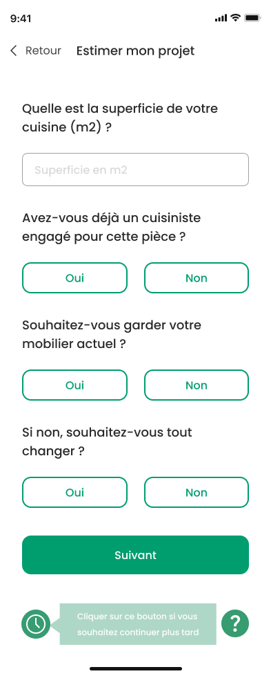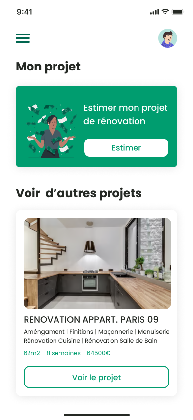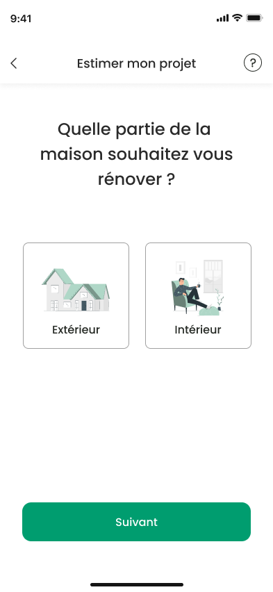 Cette application avait pour objectif principal de permettre aux utilisateurs d’estimer rapidement le coût d’une rénovation de leur appartement ou maison en moins de 5 minutes.